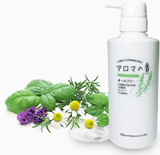 アロマの香は合計21種類の天然植物成分の“エキスと香り”のチカラを特殊な製法で150%引き出すことにより、界面活性剤をはじめとする化学成分の皮フと毛髪へのダメージをなくすことで“皮フと毛髪とカラダに限りなく優しい”画期的なシャンプーを商品化することに成功しました。